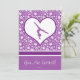 Powerful purple floral pattern Gymnastics party invitation. In the back is a rich purple covered in adorable white flowers. There is also a gymnast silhouette in a big white heart. Add your own text before ordering! Additionally, use the "customize it" button to change the fonts and colours!
