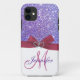 Personalized Purple Glitter, Pink Printed Bow Case-Mate iPhone Case