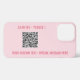 Choose Colours and Font - iPhone Case with Your Special QR Code Info and Custom Text Personalized Modern iPhone Cases Gift - Add Your QR Code - Image or Logo - photo / Text - Name or other info / message - Resize and Move or Remove / Add Elements - Image / Text with Customization Tool. Choose / Add Your Favourite Background and Text Colours / Font / Size ! Please see my others projects / designs. You can also transfer this designs to more than 1000 Zazzle products. Good Luck - Be Happy :)