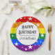 Add some pride to your birthday party with these customizable rainbow flag paper plates.