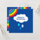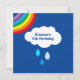 A wonderful brightly colored weather themed pattern including a rainbow, white fluffy clouds and a drizzle of rain.