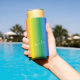 Personalized Rainbow Pattern Script Monogram Seltzer Can Cooler