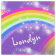 Bright and colourful rainbow add your own name patterned fabric. Fabric can be personalized with your own name choice, currently reads Londyn. A great personalized fabric ideal to make items for vibrant girls who love colour, background colour can also be changed if required. Original art and design by Sarah Trett.