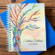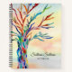 This unique Notebook features a mosaic tree in the colours of the rainbow on a watercolor background.
