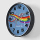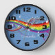 White musical notes floating on a rainbow of swirling colours on a bluebackground. The background colour can be changed by clicking on the customize button. Customize the text to create a unique personalized musical design clock. Perfect for the music lover.