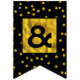 Personalized Random Gold Dot Patten Wedding or Any Text. Elegant Gold Dots on Black with Black Letters or Change to say anything you want! Make this a Your Text Here Bunting Banner! Any text make it unique and truly yours! Perfect for the Gold Wedding or any colour wedding, gold is the new neutral! Or any kind of party at all! Beach Party, Pool Party, Birthday or 5oth Wedding Anniversary Party! You can change the Faux Gold Foil for any colour by replacing the square of Faux Foil with any colour square. Just make a square in the colour of your event and change it out with the change button.