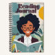This colourful reading journal featuring blue, green, brown, and yellow hues can be customized by adding your name to the back cover!