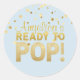 Personalized Ready to Pop Baby Shower BOY Blue Classic Round Sticker