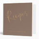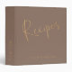 This stylish recipe binder has a modern minimalist style with a gold colour text on a solid earthy mocha brown background. Personalize it with your name. A great gift for brides, home chefs, newlyweds, or anyone who loves to cook and keep treasured recipes in one place.