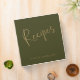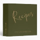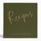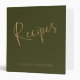 This stylish recipe binder has a modern minimalist style with a gold colour text on a solid olive green background. Personalize it with your name. A great gift for brides, home chefs, newlyweds, or anyone who loves to cook and keep treasured recipes in one place.