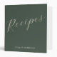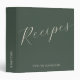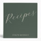 This stylish recipe binder has a modern minimalist style with script typography on a dark sage green background. Personalize it with your name. Great gift idea.