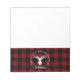 The product design features a silhouette of a deer on a classic red and black buffalo plaid pattern. Combined with your own personalized text, this composition makes farmhouse country-style, modern, and unique notepads - Gift Idea for family reunion, Christmas holiday, or any other special gatherings!