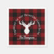 The product design features a silhouetted profile of a reindeer on a classic red and black buffalo plaid pattern. Combined with your own personalized text, this composition makes farmhouse country-style, modern, and unique paper napkins for Thanksgiving, Christmas holiday, family reunion, or any other special gatherings!