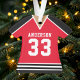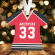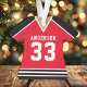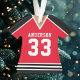 Celebrate your hockey star with this personalized red and black hockey jersey ornament. Perfect for commemorating a special season, player, or team. Customize it with a name and number to create a unique keepsake.