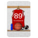 Personalized Red and white basketball jersey hanging in a locker room with a basketball , basketball sneakers and a drinks bottle. The jersey is customizable with your own numbers and name, to create a truly unique gift for the Basketball player or basketball fan. If you require a different colour combination contact us via the store prior to purchase. sgb01