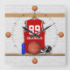 Personalized Red and White Basketball Jersey Square Wall Clock