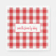 Perfect for any party! Text may be personalized. Red and white buffalo plaid.