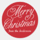 Personalized Red And White Merry Christmas Classic Round Sticker