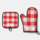 Personalized Red And White Vichy Pattern Oven Mitt & Pot Holder Set