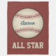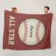 A vintage style baseball decorates this muted red fleece blanket. Personalize this blanket by changing the name. This blanket is great for boys, teens, men, sports fans, a bedroom, etc...The design is from original art.