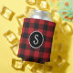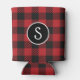 Personalized Red & Black Buffalo Plaid Monogram Can Cooler