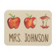 Magnet design features an original illustration of a row of red apples. Just personalize with the name of your favourite teacher!