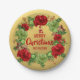 Personalized RED Gold MERRY CHRISTMAS Wreath Paper Plate
