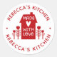 A personalized "made with love" sticker featuring a cute little red house with a heart and the words, made with love. Personalize it by adding your own name. A pretty finishing touch for all of your homemade gifts. Designed for you by Blackberry Boulevard.