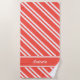 Looking for customized beach towels for the cottage or boat? Having a summer party or just want to mark your space on the shore for any or all of you? Use this classic striped pattern beach towel with its template for your name, or that of your cottage, company or party. Available in other colours, too, for a mix or match at your next beach outting or pooling party.