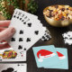 A red Santa Hat personalized with a name in bright red decorates these turquoise playing cards, making a fun Christmas gift or stocking stuffer.