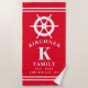 Personalized Red Ship Wheel Nautical Family Beach Towel