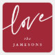 Square sticker/envelope seal with the word 'love' in a handwritten script font. The rest of the text is completely customizable - so the font style, size, colour and placement can be changed. The background colour can also be changed using Zazzle's editing tools. This design is available in different colours and on other sticker shapes/sizes in my store.