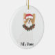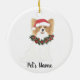 Personalized Red & White Papillon Christmas Ceramic Ornament