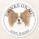 Personalized Red & White Papillon Dog Wedding Round Paper Coaster