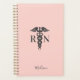 Stay organized with this Personalized Registered Nurse Blush Pink Medical Planner. It is designed with a light pink background on the front and back. The front has a grey caduceus symbol and "RN" on the centre. Name is in trendy hand lettered script across lower front.