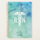 Keep organized with this Personalized Registered RN Teal Blue Medical Planner.  It has has a modern design with aqua blue and teal ombre watercolor background.  A white caduceus symbol and "RN" is on the front centre.  Personalized with name in darker teal trendy script lettering across the lower centre.  The word "planner" can also be customized to your very own text or deleted.