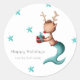 Personalized Reindeer with Present Holiday Classic Round Sticker