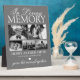 Memorial plaque featuring a modern gray background, 5 photos of your lost loved one, the text "in loving memory", their name, birth/death dates, a love heart, and the remembrance saying "gone but never forgotten".