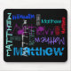 Designed for a first name with 7 letters like Matthew on mousepad. You can easily change background colour and text (colour, font, size and position) by clicking the personalize or customize button. Available for name with 6 letters like Ashley.