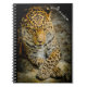 Personalized note book with a color photo of the front view of a resting Leopard laying down with its front paws crossed, head slightly bowed, and eyes partially closed. Add your name, monogram, or other text. Photo credit to Karen Grigoryan, www.grigphoto.com. Approved licensing purchased and in place. Email niteowlstudio@gmail.com if you need assistance.