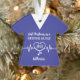 Personalized first Christmas as a retired Nurse ornament with a blue scrub and a stethoscope illustration. Customize it with a name and year. Change the colours of the skin and uniform by clicking the button to edit the design.