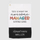 I thought the concept of having a personalized golfing tower was a fabulous idea and the product delivered! The printing was clear and crisp and the quality of the towel was not bad at all.