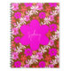 Pink flowers personalized notebook journal. Hand-drawn funky floral pattern in shades of pin on a brown background, has a big pink flower in the centre for a name. Perfect for a teenage daughter to use as a journal or school classwork.