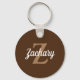 This personalized keychain features a tan monogram and white retro script name on a brown background.