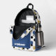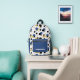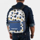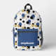 This stylish retro backpack features abstract polka dots in blue, black, gold and stripes. Add your name to personalized.