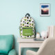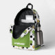This stylish retro backpack features abstract polka dots in green, black, gold and stripes. Add your name to personalized.