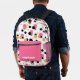 This stylish retro backpack features abstract polka dots in pink, black, gold and stripes. Add your name to personalized.