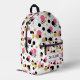 This stylish backpack features retro abstract polka dots in pink, black, gold and stripes and personalized with your name.