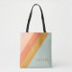 Personalized Retro Stripes Mint Peach Pastel Tote Bag