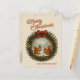 Personalized Retro Wreath With Cute Squirrels Holiday Postcard